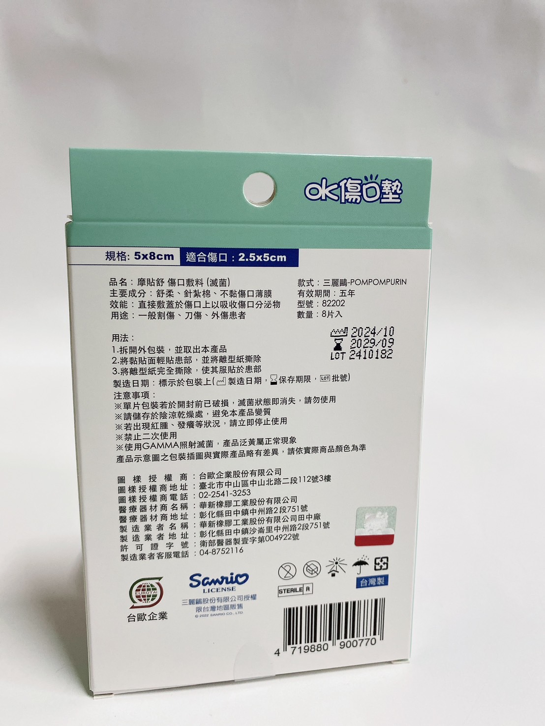 三麗鷗傷口貼布丁狗8入