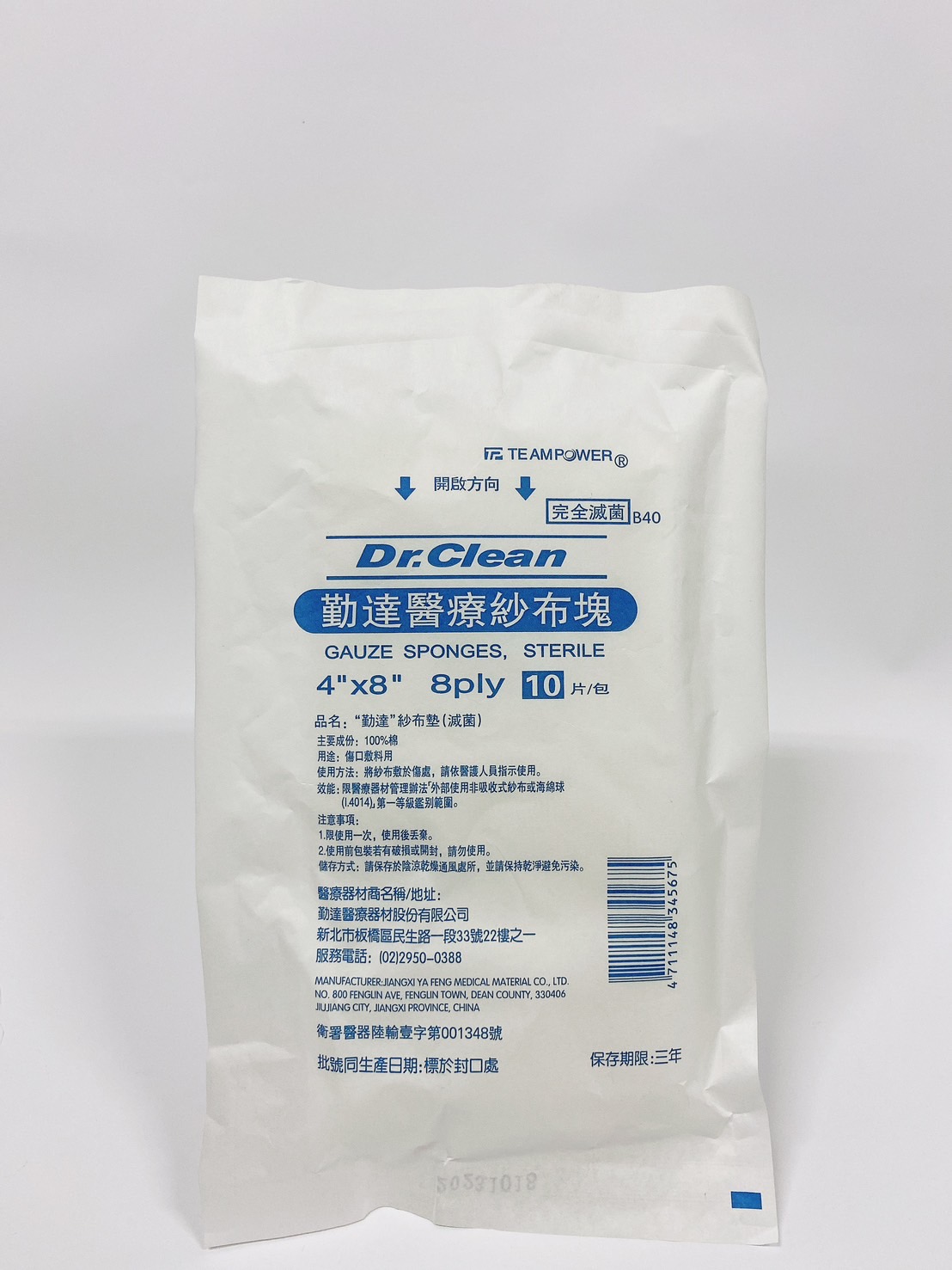 10片勤達滅菌全紗布塊4*8
