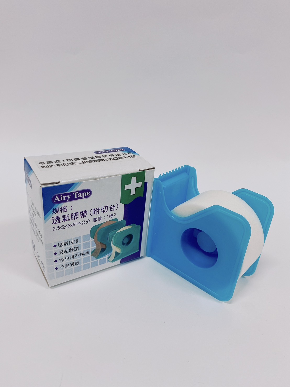 明興透氣膠帶有盒附台-膚小0.5吋